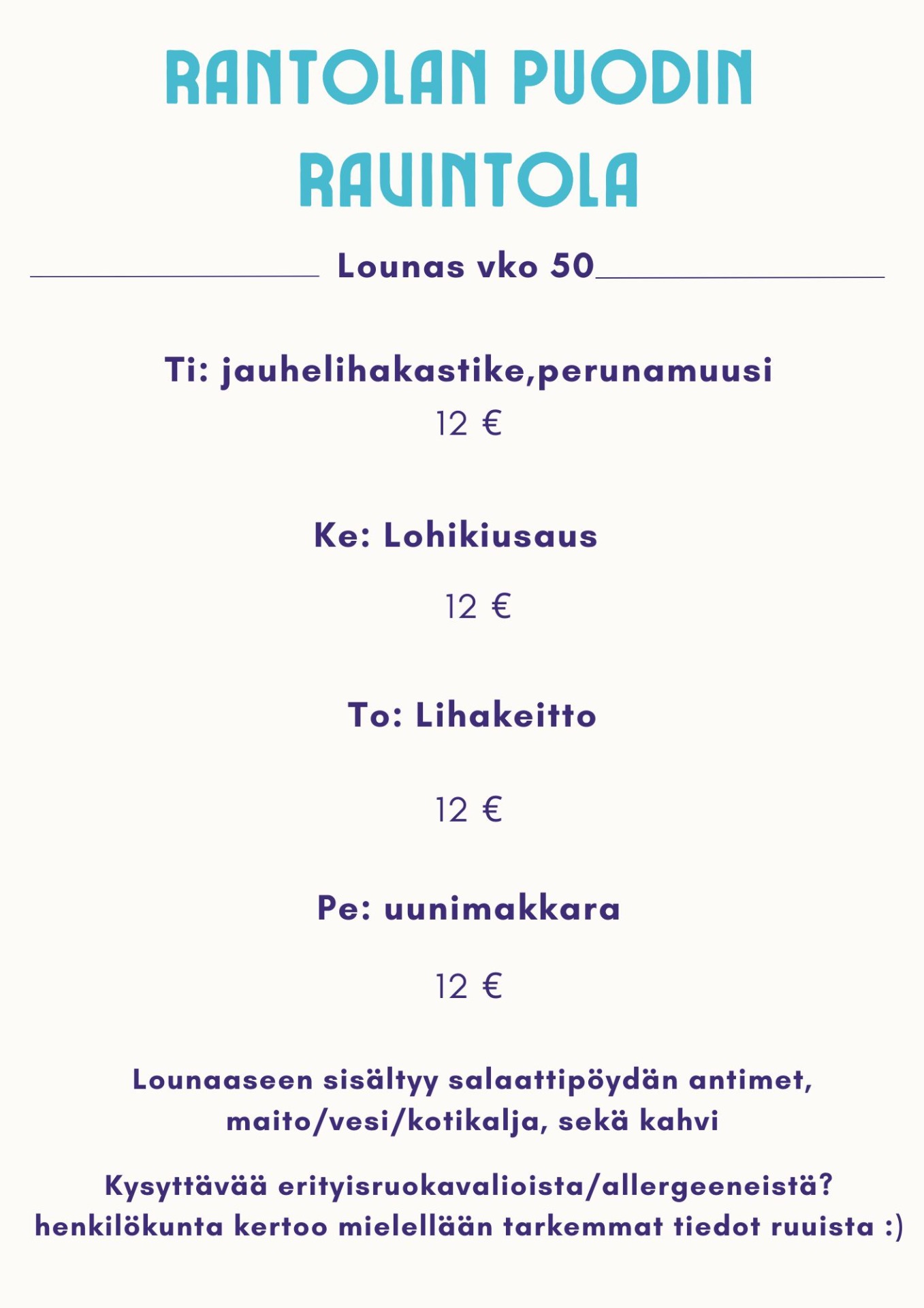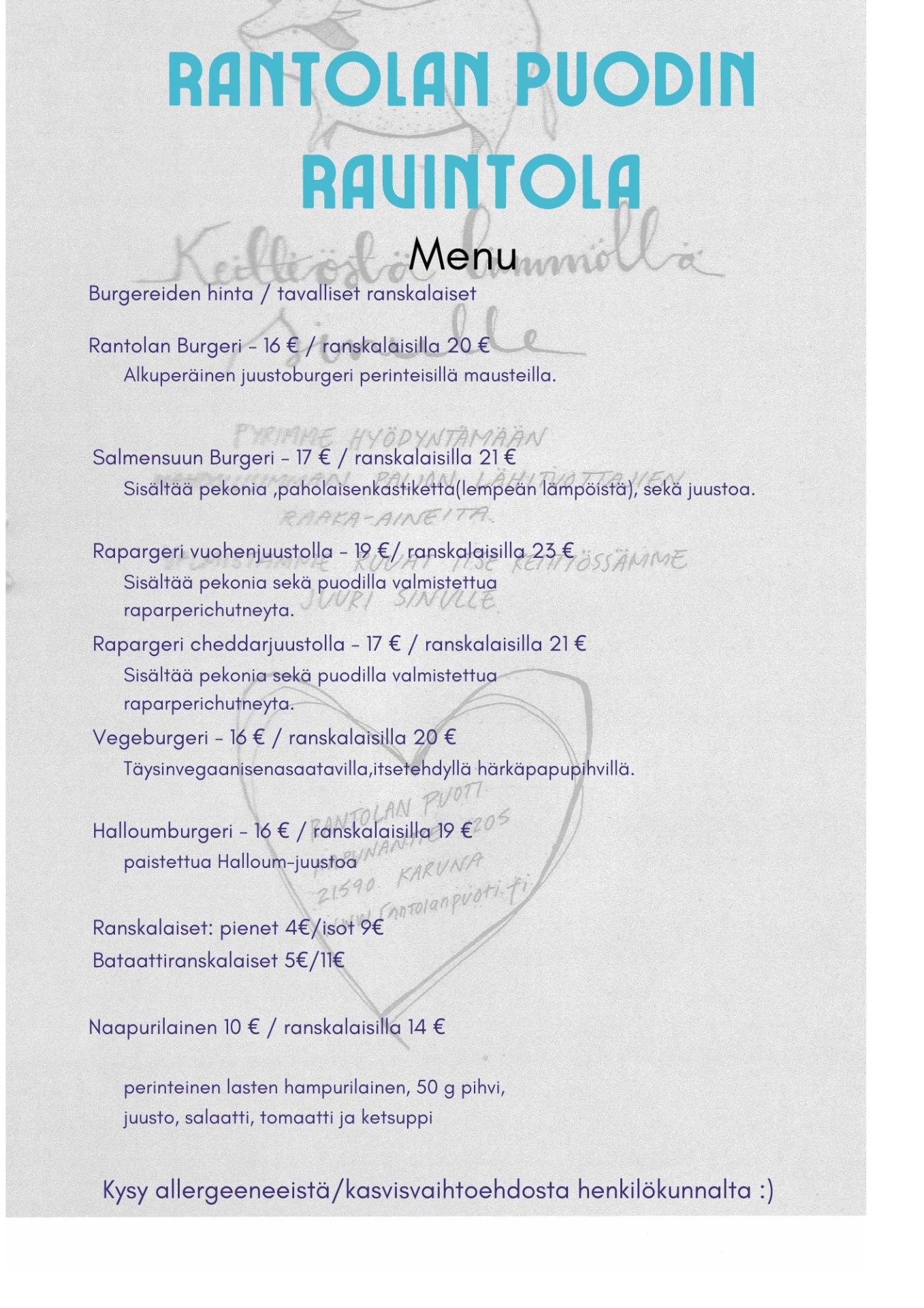 Löydät meidät googlesta hakusanoilla Rantolan Puodin Ravintola :)